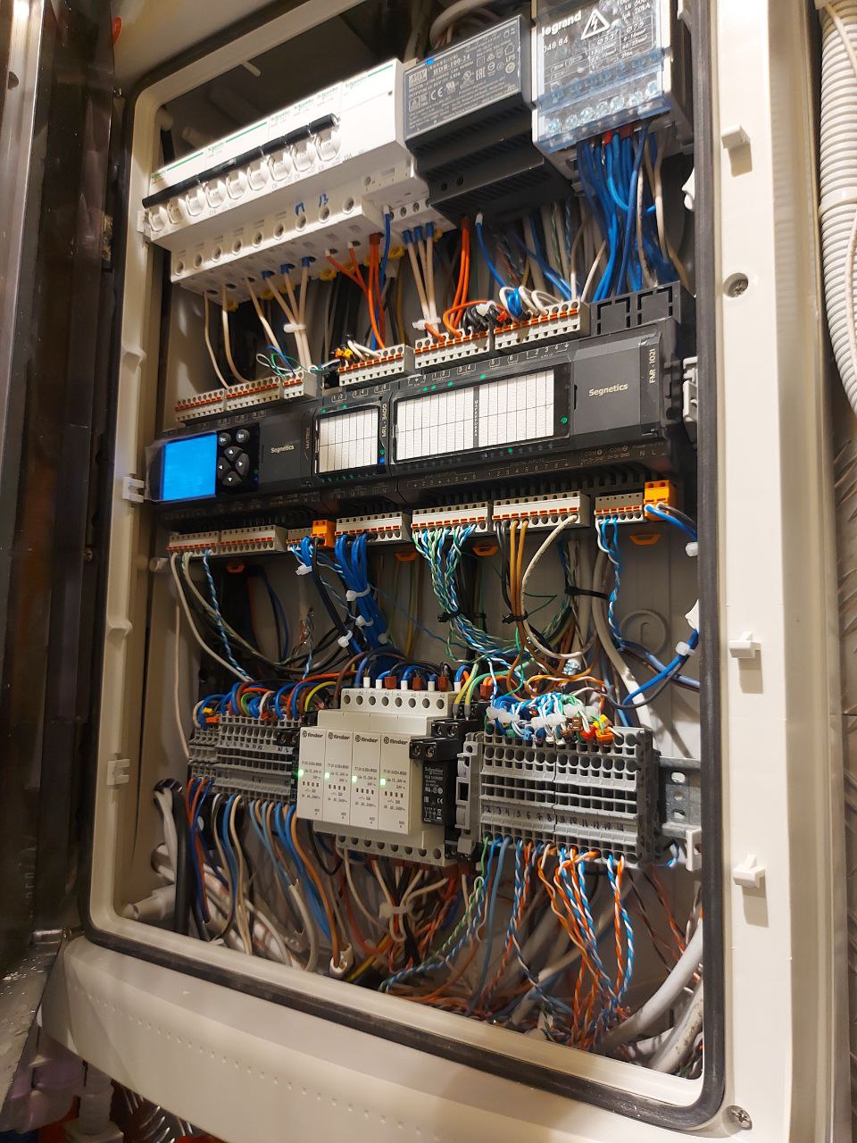 Разработана и внедрена система управления: вытяжной вентиляцией кухонного цеха ресторана (технологические вытяжки); приточной установкой с водяным теплообменником (нагрев и охлаждение), оборудованной инверторным компрессорно‑конденсаторным блоком (ККБ) для энергоэффективной регулировки мощности.